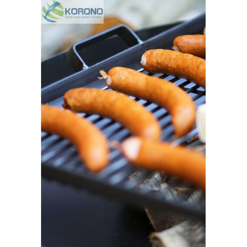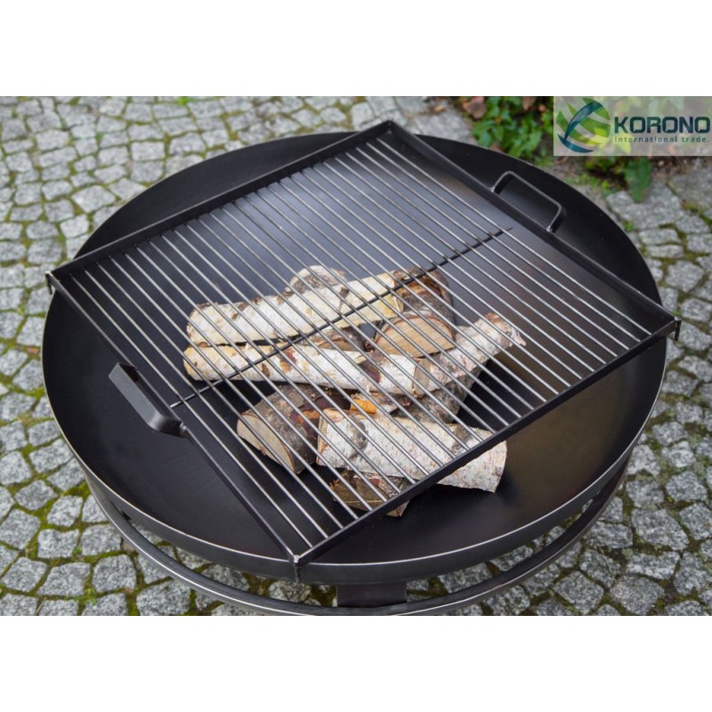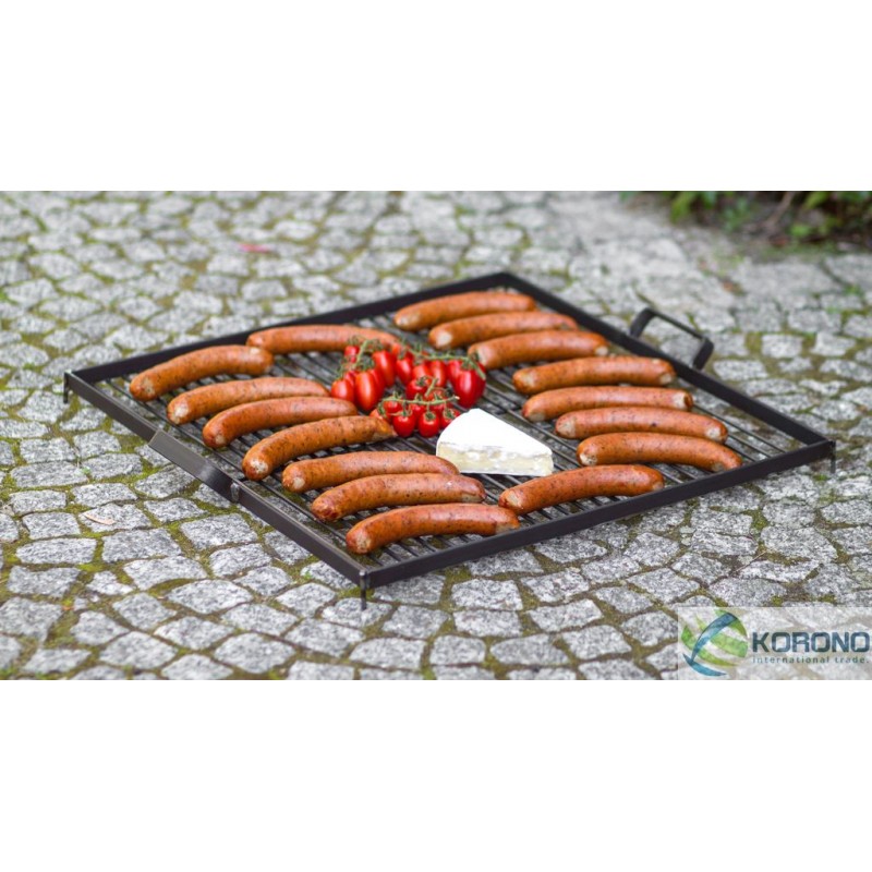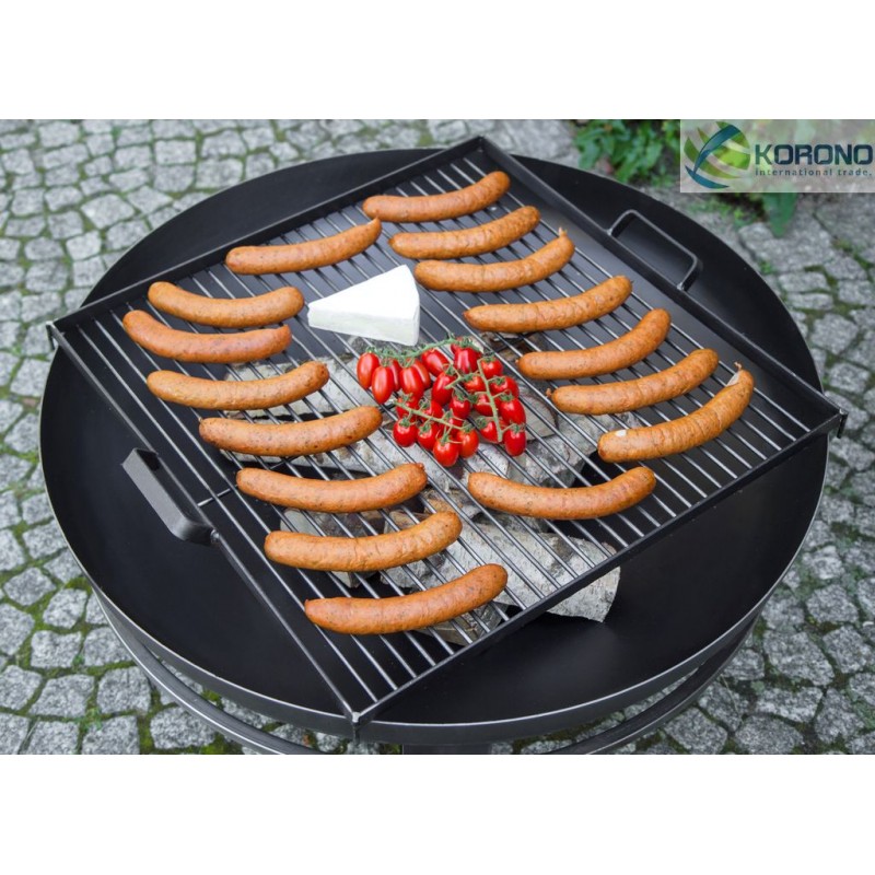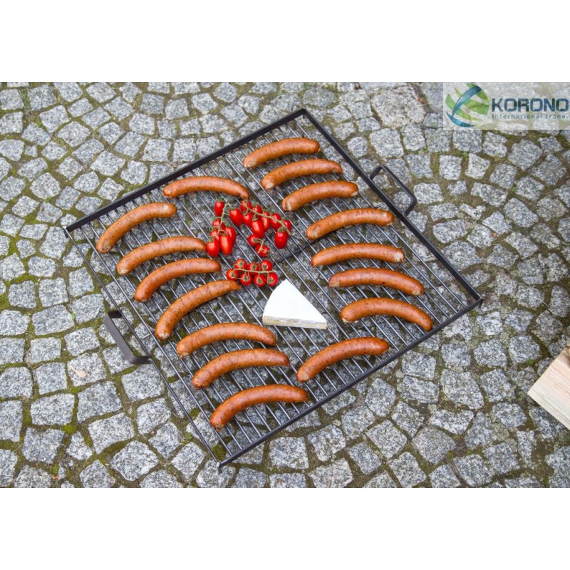 Dieser Rost mit einer großen Grillfläche wurde aus haltbarem und hochtemperaturbeständigem schwarzem Stahl gefertigt. Der quadratische Rost hat zwei angepasste Griffe, die dessen Tragen vereinfachen. Die Hauptfunktion dieses Rostes besteht darin, dass er auf jede Feuerschale der Firma KORONO gestellt werden kann, ohne dass ein Dreibein nötig ist.