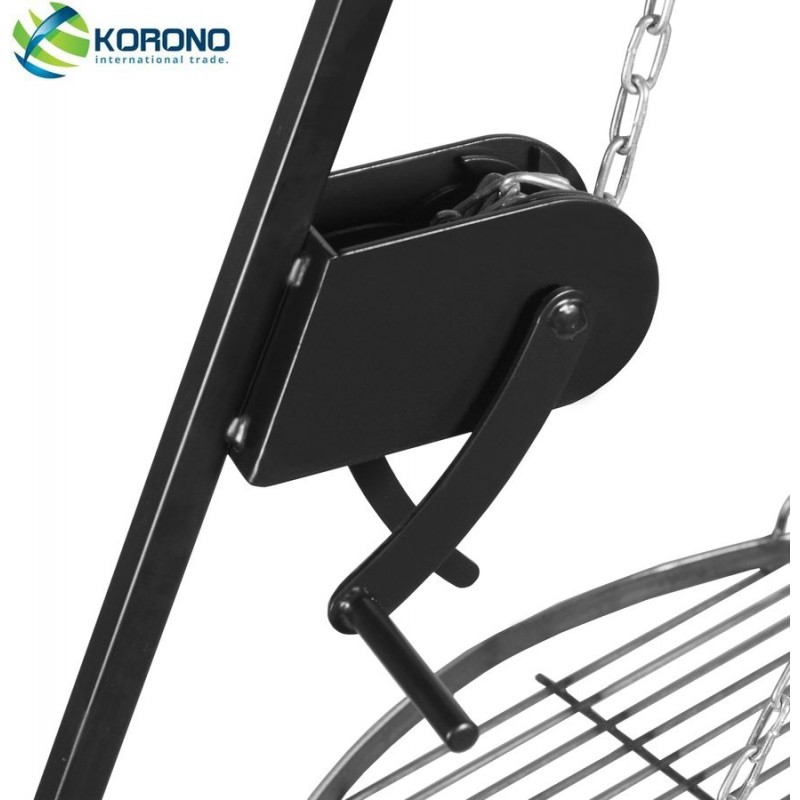 Ein Gartengrill am Dreibein mit einer Höhe von 180 cm ist ein perfektes Produkt für Treffen mit Bekannten im Garten. Bei diesem Grill kann sowohl ein gewöhnliches Feuer als auch traditionelles Kohlenbrikett als Wärmequelle verwendet werden. Das Dreibein ist pulverbeschichtet, was seine Wetterbeständigkeit erhöht. Der massive, aus dicken Materialien ausgefertigte Rost kann eine große Menge Essen halten. Das stabile Dreibein lässt den Gartengrill auf jeder, auch auf einer unebenen, Fläche aufstellen. Dank den in der Mitte faltbaren Beinen hat das Produkt einen zusätzlichen Vorteil: Das Dreibein lässt sich schnell und einfach montieren, demontieren, transportieren und aufbewahren. Wegen der effektvollen Verzierungen mit geschmiedeten Elementen ist der Grill eine Augenweide. An ein Bein des Dreibeins wurde eine Winde mit einer Zahnstange angeschweißt, die den Rost auf einer beliebigen Höhe blockieren lässt.